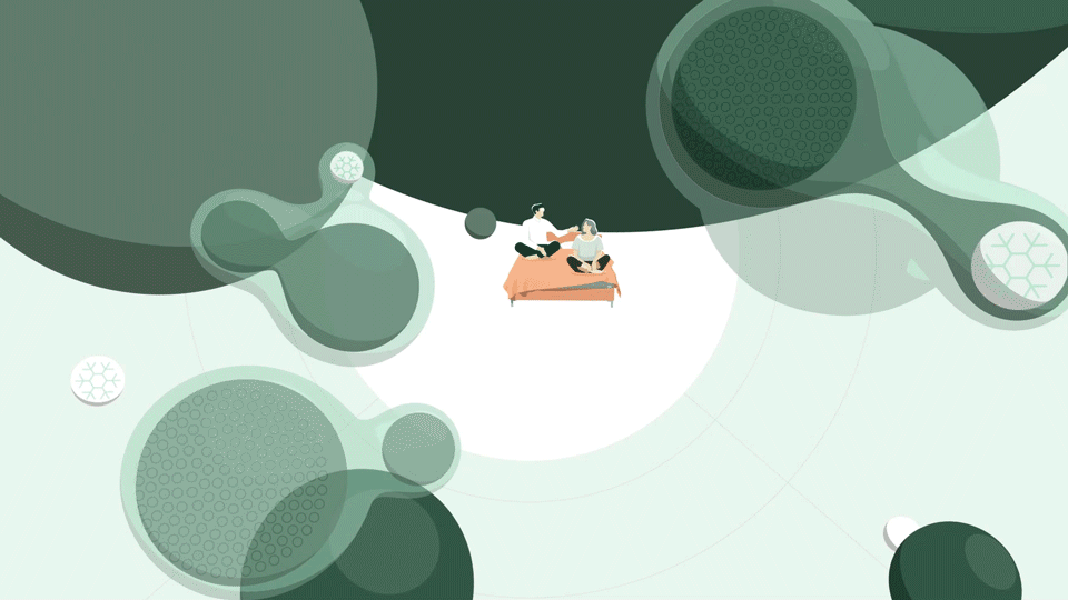 A mix of 2D and 3D animation allowed us to create these special moments like the characters flying into the cooling gel that helps regulate body temperature while sleeping.
